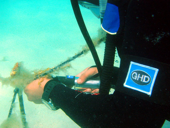 圖2 - GHD潛水者下載溫度數(shù)據(jù)使用防水 HOBO 梭在一個(gè)nearshore站點(diǎn)在NDIA附近