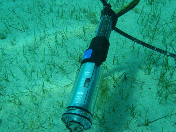 滿足第一個(gè)宗旨的要求, GHD的商業(yè)潛水者部署 HOBO 溫度日志記錄器 在2008年5月在六個(gè)nearshore站點(diǎn)以范圍從1.5的深度到9 m。 日志記錄器通過附有他們?nèi)菀椎夭渴鸪练e陷井用電纜扎匝,如圖1所顯示。 HOBO 溫度日志記錄器使用在水面下每月被下載了 HOBO 防水梭為數(shù)據(jù)檢索提供快和可靠的機(jī)制原地(圖2和圖3)。