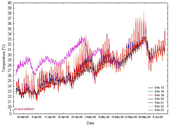 圖4 -從2009年3月28日- 2009年6月6日記錄的之間NDIA長(zhǎng)的期限水溫?cái)?shù)據(jù)