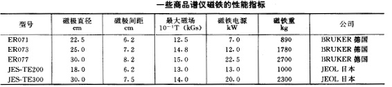 一些商品譜儀磁鐵的性能指標列于下表。