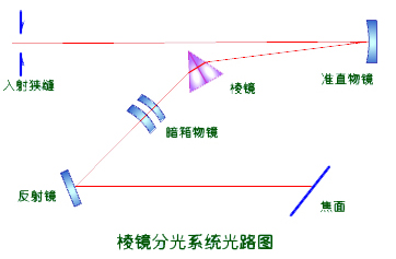 早期生產(chǎn)的色譜儀多為棱鏡式分光系統(tǒng)。進(jìn)入狹縫的入射光經(jīng)準(zhǔn)直物鏡變?yōu)槠叫泄夂笊涞饺忡R上,經(jīng)棱鏡色散和暗箱物鏡聚焦到焦面上。棱鏡分光系統(tǒng)的色散率是隨波長而變化的。
