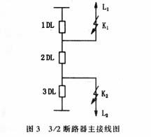 b. 3/2斷路器接線由母線斷路器向母線充電或由母線向母線側(cè)間隔充電。