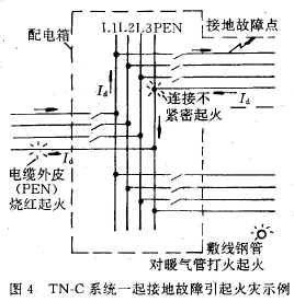 在 TN-C 系統(tǒng)中 PEN 線平時通過三相不平衡電流,但在機(jī)械、紡織等一些主要為三相平衡負(fù)荷的企業(yè)內(nèi),因三相不平衡電流小,PEN 線端子連接不緊密的隱患不易發(fā)現(xiàn),當(dāng)大故障電流通過時同樣也可導(dǎo)致火災(zāi)。