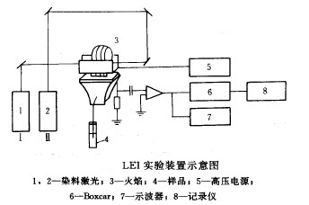 將激光選擇性激發(fā)原理用于火焰原子化器的元素分析,發(fā)展了另一種激光電離光譜技術? 激光增強電離光譜(laser enhanced ionization , LEI )。下圖是LEI 典型實驗裝置示意圖。當火焰中的原子被可調諧激光選擇性地激發(fā)到接近電離連續(xù)態(tài)的高能態(tài)時,受激原子的熱碰撞電離效率將顯著增加,產(chǎn)生電子和正電荷離子。通過置于火焰兩旁的高壓電極收集所形成的離子,便得到光電離信號。經(jīng)過多年研究,LEI 技術已趨成熟,而且已擴展到石墨爐、等離子體以及微波等原子化器。多數(shù)元素的檢測限在ng/ml~Pg/ml 范圍,靈敏度比石墨爐原子吸收光譜(graphite furance atomic absorption spectroscopy, GFAAS)高1~2 個數(shù)量級,與激光誘導原子熒光光譜分析的靈敏度處于同一水平。LEI 檢測的是電流信號,具有檢測效率高、不受散射光等雜散光背景干擾的優(yōu)點,是非常有發(fā)展前途的激光痕量分析方法之一。鑒于LEI 方法已足夠成熟和用途廣泛,許多學者認為,現(xiàn)在應是LEI 走出激光實驗室,步入普通分析實驗室的時候了。