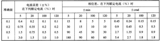 4、互感器的準(zhǔn)確度是和負(fù)荷電流相聯(lián)系的,負(fù)載電流在額定電流的120%以?xún)?nèi),負(fù)載越大,電流互感器誤差越;當(dāng)負(fù)載電流在額定電流的120%~165%之間時(shí),隨著負(fù)載電流增大,電流互感器誤差增大,但在允許范圍內(nèi)逐漸趨于平衡。這是因?yàn)樵谠O(shè)計(jì)電流互感器時(shí),決定電流互感器過(guò)載能力的飽和倍數(shù)一般最小為額定電流2~3倍,互感器在額定頻率下,其比差及相角差應(yīng)符合下表: