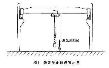 測(cè)距儀于起重機(jī)主梁跨中的地面上(見(jiàn)圖1),將空載小車開(kāi)至任意一端梁處停下,開(kāi)啟激光