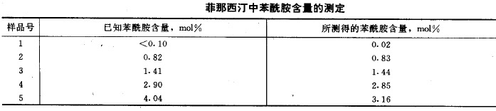 實例:利用單峰法測定菲那西汀中苯酰胺雜質(zhì)的含量,所測結果列于下表。