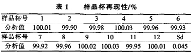 從表1中可看出樣品杯之間的再現(xiàn)性結(jié)果好,能用于測(cè)定樣品。