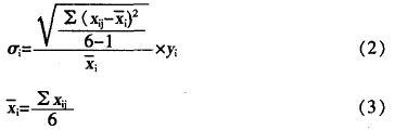 式中:xi-i組分的平均測(cè)定值(cps),xij-i組分的j玻璃片的測(cè)定值(cps),σi-i組分的分析精度,yi-i組份的含量(%)。