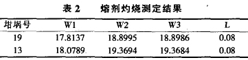 每l000g熔劑中取二份各1g,在700℃下灼燒1h。恒重。求得灼燒失量L。結(jié)果見(jiàn)表2。