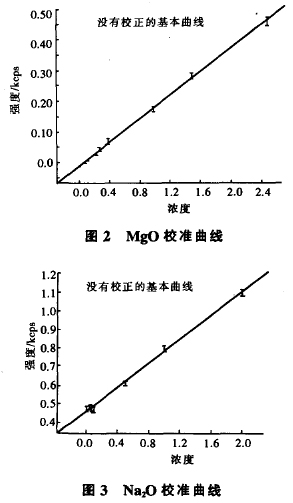 以濃度和測(cè)量強(qiáng)度制作校準(zhǔn)曲線, 由于元素之間存在吸收和增強(qiáng).采用理論α系數(shù)進(jìn)行基體校正。α系數(shù)見(jiàn)表7。