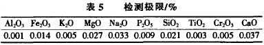 注:可用100%SiO2基體得到Al2O3檢出限。