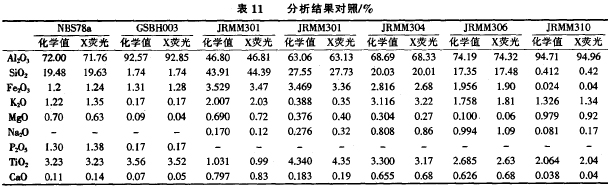 采用標(biāo)準(zhǔn)樣品和具有化學(xué)值的樣品作為未知樣品進(jìn)行測(cè)定。結(jié)果見(jiàn)表11。從分析結(jié)果對(duì)照表中可看出此方法具有較好的準(zhǔn)確度。