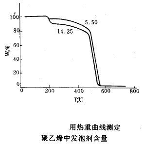 。╟)低密度聚乙烯泡沫塑料中發(fā)泡劑含量的測定,如下圖所示。實驗時,在氮氣流中樣品以100℃/min 的升溫速率加熱到180 ℃ ,促進發(fā)泡過程的進行。然后用5 ℃/min 的升溫速率從180℃ 緩慢加熱到210 ℃ ,以保證氣體在聚乙烯降解前從熔融的試樣中擴散出來。自210 ℃ 到700 ℃ 以50℃/rnin 的升溫速率加熱,便樣品高溫分解。為了除掉含碳殘渣,此時應將氣流轉換成氧氣。
