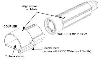 4。耦合器連接到基站或穿梭,然后耦合器插入記錄器上的箭頭記錄標(biāo)簽與耦合器標(biāo)簽上的箭頭對齊。
