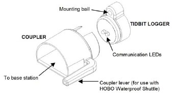5。如果您使用的是HOBO防水系列,只需按一下耦合桿把航天飛機(jī)進(jìn)入基站模式。