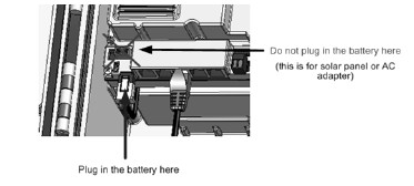 要點:始終外掛電池之前,首先你插入任何太陽能面板或電源連接器。斷開電源時,始終未插任何太陽能電池板或電源連接器,然后聯(lián)合國插頭電池。