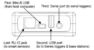 2。使用數(shù)據(jù)傳送器的USB端口或串口連接正確的電纜或基站的記錄,然后連接記錄器。