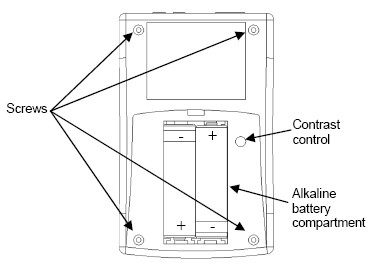 3。取出舊電池,并安裝了兩個(gè)新的AA堿性在電池的電池在正確的方向,如下所示艙。