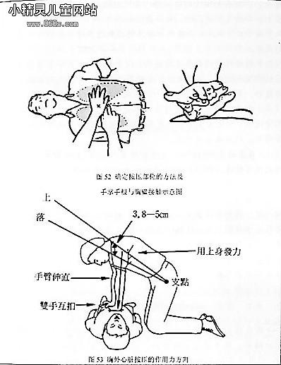 3、心跳停止者應(yīng)先進行胸外心臟按摩。讓其仰臥,背部墊一塊硬板,頭低稍后仰,急救者位于一側(cè),右手掌平放在其胸骨下段,左手放在右手背上,借急救者身體重量緩緩用力,不能用力太猛,以防骨折,將胸骨壓下4厘米左右,然后松手腕(手不離開胸骨)使胸骨復(fù)原,反復(fù)有節(jié)律地(每分鐘60——80次)進行,直到心跳恢復(fù)為止。