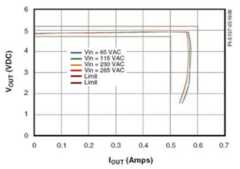 圖2描述了25℃條件下對(duì)整個(gè)輸進(jìn)電壓范圍內(nèi)的輸出電壓及電流的嚴(yán)格控制。圖2中所示的LinkSwitch-II的輸出容差是以P/G封裝在0℃至100℃的結(jié)溫度范圍內(nèi)指定的。