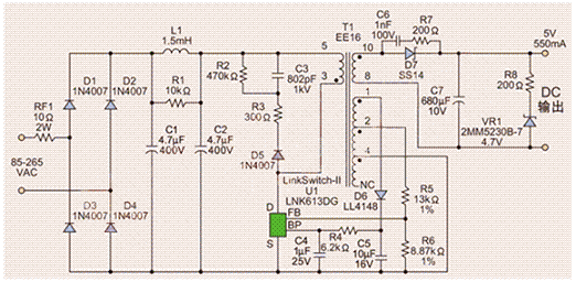 2.75W CV/CC通用輸進(jìn)充電器電源電路。
