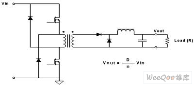 圖3中的半橋變壓器是高功率要求的另一個(gè)選擇。和單開關(guān)或雙開關(guān)正向變壓器相反,半橋變壓器可以在兩個(gè)象限工作并降低原邊FET的電流。變壓器組成結(jié)構(gòu)和輸出整流比單一正向拓?fù)浣Y(jié)構(gòu)復(fù)雜,也存在高開關(guān)耗損題目。