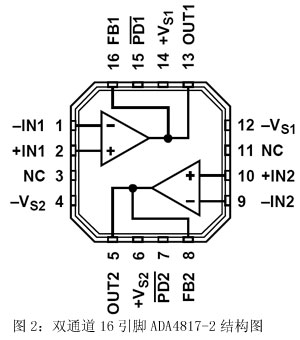 ADA4817-1封裝規(guī)格為8引腳LFCSP和8引腳SOIC;ADA4817-2為16引腳LFCSP和16引腳SOIC封裝;二者現(xiàn)均可供貨,千片訂量報價分別為每片2.95美元和4.98美元。