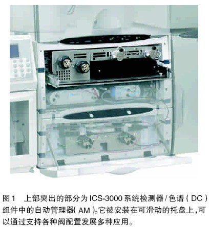 DC 組件包括分離、檢測(cè)和自動(dòng)控制三部分。分離柱所處的環(huán)境是可控溫的。為滿足一元或二元系統(tǒng)的需要,在DC 中帶有電導(dǎo)和電化學(xué)兩種檢測(cè)器。它們的檢測(cè)池都是即插即用型的。在DC 組件的底部還有2 個(gè)用于進(jìn)樣和樣品預(yù)處理的閥。所有的閥都位于一個(gè)可滑動(dòng)的托盤上,便于安裝和維護(hù)。DC 組件的一個(gè)重要部分AM,可以配置2個(gè)高壓閥、2個(gè)低壓閥和1 個(gè)柱后反應(yīng)加熱器。它可以使閥切換變得更容易。