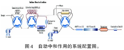 閥切換技術(shù)的另一個(gè)應(yīng)用是自動(dòng)中和作用。該技術(shù)主要用于高濃度堿溶液中陰離子的定量分析。分析這類樣品通常采用的方法是將樣品稀釋到基體離子不影響分離的水平。然而稀釋的同時(shí)也降低了痕量陰離子的濃度,會(huì)影響其檢測(cè)。