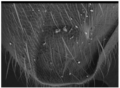 這張圖片是由136張有電子顯微鏡拍得的照片拼起來的。這樣人們就能夠非常清楚地觀察螞蟻身上的各個細節(jié)。這些照片是由位于加州的美國宇航局艾姆斯研究中心(Ames Research Center)的莫利-吉布森拍攝的,在納米技術(shù)專家杰伊-隆森的幫助下這些奇異的圖片得以呈現(xiàn)在人們面前。不過由于光學(xué)顯微鏡的視場沒有電子顯微鏡深,所以用光學(xué)顯微鏡無法獲得如此奇異的圖片。