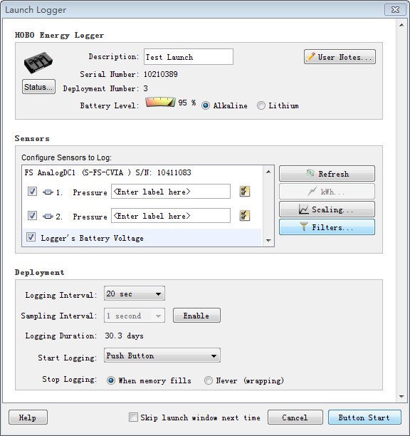 啟動HOBO軟件,點(diǎn)擊launch來設(shè)置記錄儀H22