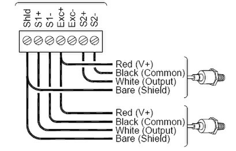 T-ASH-G2-200有4條接線,分別有裸線(是屏蔽線 接shld)、紅線(接Exc+)、白線(接S1+或S2+)、黑線(接S1-或S2-)。