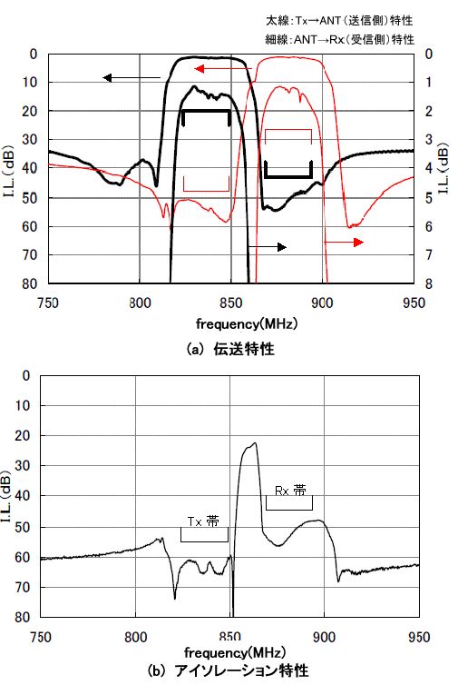 圖1:W-CDMA BAND5(800MHz)收發(fā)雙工器的電特性