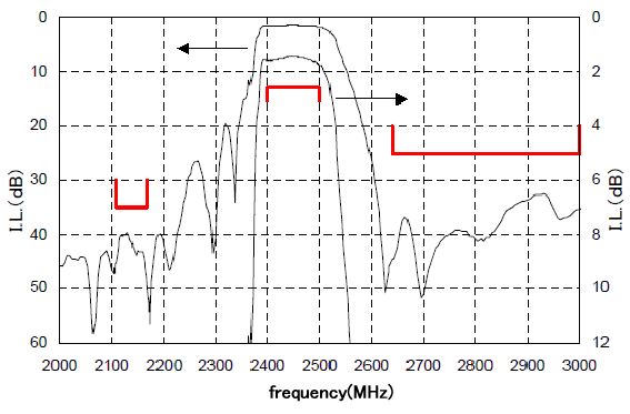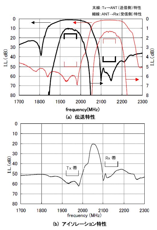 圖2:W-CDMA BAND1(2GHz)收發(fā)雙工器的電特性