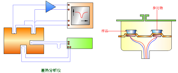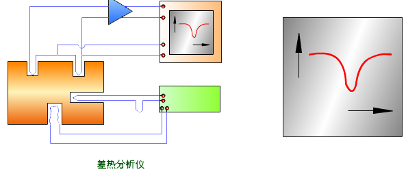 曲線(xiàn)的縱坐標(biāo)為樣品與參比物的溫度差,向上表示放熱反應(yīng),向下表示吸熱反應(yīng)。注意:在測(cè)定時(shí)所使用的參比物應(yīng)該是惰性材料即在測(cè)定條件下不產(chǎn)生任何熱效應(yīng)的材料。