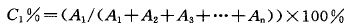 組分1 的百分濃度等于它的斑點(diǎn)面積在總斑點(diǎn)面積中所占的百分比。當(dāng)然只有在被分析各組分的性質(zhì)差別較小以及斑點(diǎn)面積在線性范圍內(nèi)的情況下才適用。