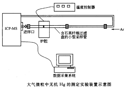 熱解吸裝置除了與GC 聯(lián)用以外,與其他儀器的聯(lián)用也有報(bào)道。Feng 等用一含石英纖維過(guò)濾盤的小型采樣石英管采集了大氣微粒中的無(wú)機(jī)Hg ,采樣管在管狀爐中加熱以后,各種無(wú)機(jī)汞進(jìn)人ICP-MS 進(jìn)行分析,裝置圖如圖所示。