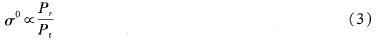 式中:σ°為海面平均后向散射系數(shù),R為雷達(dá)到目標(biāo)的斜距, 為系統(tǒng)損耗(包括環(huán)形器、波束開關(guān)和隔離器等部件的損耗), 為天線波束在地面某一分辨單元小塊的面積,G為天線增益,z為波長,Pt為峰值發(fā)射功率,Pr為接收功率。