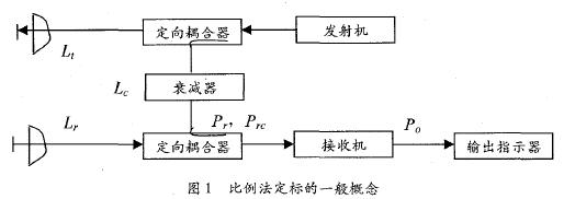 圖1中,從發(fā)射機(jī)到天線的饋線中有一個(gè)定向耦合器,從天線到接收機(jī)的饋線中也接有一個(gè)定向耦合器,這兩個(gè)耦合器之問是一段已知衰減量的饋線。發(fā)射信號的取樣可以饋送給接收機(jī)。根據(jù)系統(tǒng)的不同類型,有的連續(xù)工作,有的交替式工作,即接收機(jī)時(shí)而測量輸入信號,時(shí)而測量定標(biāo)信號。在定向耦合器輸入端,發(fā)射功率為Pt;在另一定向耦合器輸入端,接收功率為Pr;那么只要饋線損耗Lt和Lr以及天線增益都保持不變,就能利用發(fā)射信號的取樣進(jìn)行定標(biāo),從而給出雷達(dá)系統(tǒng)的完整相對定標(biāo)法。