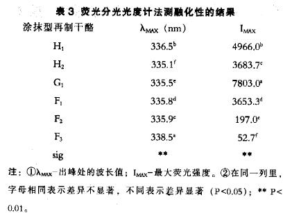光度計(jì)法測定其融化性。通過比較, 本研究探討了用前鏡熒光分光