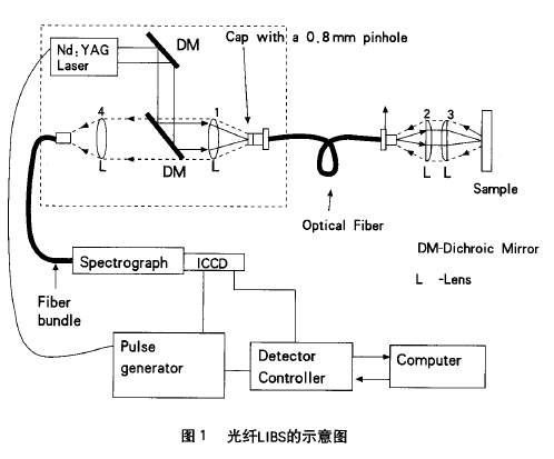 自首次報(bào)道采用紅寶石激光器產(chǎn)生激光誘導(dǎo)火花以來(lái)[2],種種不同的實(shí)驗(yàn)方法己建立起來(lái)用于基礎(chǔ)研究和實(shí)際應(yīng)用。但是大多數(shù)現(xiàn)有的實(shí)驗(yàn)方法都是實(shí)驗(yàn)室系統(tǒng),在這一系統(tǒng)中,用一組透鏡將高強(qiáng)度的激光束聚焦在試樣表面產(chǎn)生等離子體,從等離子體發(fā)射出的光可以由上述同一組透鏡或用另一組透鏡收集,然后聚焦在分光計(jì)的入射狹縫處以做進(jìn)一步分析。這一類實(shí)驗(yàn)裝置可能不太適合野外現(xiàn)場(chǎng)測(cè)量,現(xiàn)場(chǎng)測(cè)量系統(tǒng)通常需要小巧的、靈活的光學(xué)通道連接檢測(cè)器及小型的現(xiàn)場(chǎng)設(shè)備。