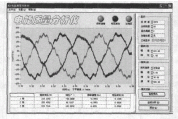 在LabWindows/ CVI 軟件開發(fā)平臺上,將數(shù)據(jù)采集系統(tǒng)結(jié)合上述分析指標(biāo),開發(fā)一套電能質(zhì)量分析系統(tǒng),該系統(tǒng)能夠?qū)﹄娔苜|(zhì)量的主要參數(shù)進(jìn)行實時檢測,提供在線和離線分析及仿真功能,以列表的形式給出三相電信號的相關(guān)參數(shù),并提供預(yù)警功能,當(dāng)頻率偏差、電壓波動等超過標(biāo)準(zhǔn)值時系統(tǒng)會給出聲音和圖形報警, 運行界面如圖3所示。