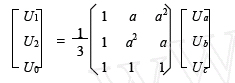 在沒有零序分量的三相系統(tǒng)中,當(dāng)已知三相量Ua 、Ub 、Uc 時,可用下式求不平衡度: