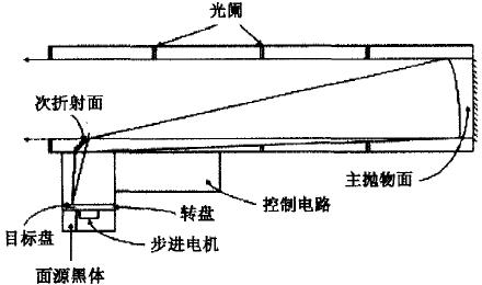 測試儀主要由平行光管、黑體、目標盤、目標轉(zhuǎn)盤、控制與顯示電路等組成。由測試儀發(fā)出模擬無窮遠目標的光線,被測的熱成像儀對這模擬的目標成像,再由被測的熱成像儀的圖像輸出和測試儀的控制信號得出待測的參數(shù)。
