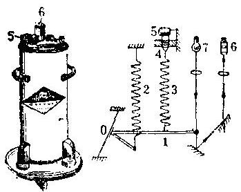 目前常用的地面重力儀都可以看作是一個高度靈敏的彈簧秤。通過觀測彈性系統(tǒng)隨重力變化而產(chǎn)生的位移來測定重力變化的。主要構(gòu)造包括彈性系統(tǒng)、光學系統(tǒng)和測讀機構(gòu)等三部分。彈性系統(tǒng)是儀器 的心臟,是感覺重力變化的部分。主要由一個可以繞水平軸o在垂直面內(nèi)自由轉(zhuǎn)動的秤桿①和主彈簧②構(gòu)成。測讀機構(gòu)主要由讀數(shù)彈簧③、測微螺絲④和測微器⑤等組成。它是用來補償和測量重力變化數(shù)值的部分。光學系統(tǒng)是由一些光學元件⑥,照明裝置⑦和帶有刻度的分劃板等構(gòu)成,是用來觀查秤桿的平衡位置的。