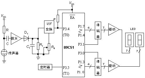 系統(tǒng)的核心部分是AT89C51單片機,其指令系統(tǒng)與MCS-51完全兼容,且片內(nèi)帶4kb的E2PROM,可以方便地構(gòu)成一個最小測量系統(tǒng)。其P3.5引腳接入由NE555構(gòu)成的定時器輸出的100kHz方波,通過T1中斷去控制T0定時計數(shù)。從T0端輸入的計數(shù)脈沖頻率,即反映了所測聲壓的大小。經(jīng)軟件處理后,噪聲聲壓級顯示值由P1口輸出,經(jīng)74LS248譯碼再驅(qū)動兩位4.572cm(1.8英寸)高亮度LED數(shù)碼管顯示,適當(dāng)控制譯碼器使能端,使兩數(shù)碼管輪流發(fā)光實現(xiàn)動態(tài)顯示,降低功耗溫濕度計| 紅外線測溫儀| 溫濕度儀| 紅外線溫度計| 露點儀| 亮度計| 溫度記錄儀| 溫濕度記錄儀| 光功率計| 粒子計數(shù)器| 粉塵計| 。