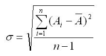 噪聲電平是用空白溶液進行不少于10次的吸收值測定 , 計算標準偏差的公式為: