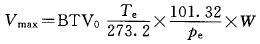 將BTV0換算為采樣溫度Te (K)、壓力pe(kPa )條件下的體積,則吸附劑填充量為W(g)時(shí)采樣管的最大采樣體積Vmax為:
