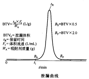 分析物在吸附劑內(nèi)的運(yùn)動(dòng)過程受動(dòng)力學(xué)和熱力學(xué)因素影響,為表征載氣量與分析物運(yùn)動(dòng)狀態(tài)的關(guān)系,引入泄漏曲線(如圖所示)。